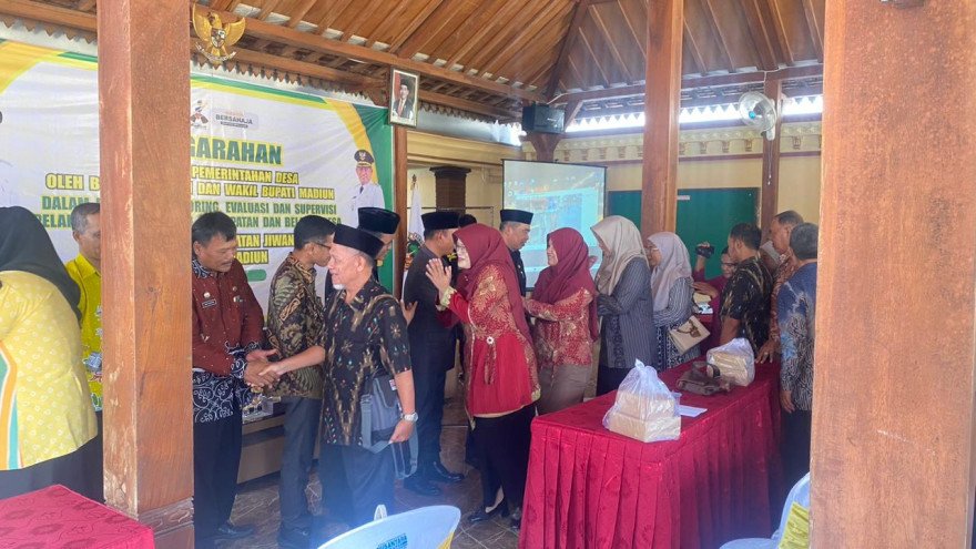 Kwangsen, 09 April 2026 – Bupati Madiun beserta Wakil Bupati Madiun telah memberikan pengarahan terkait tata kelola pemerintah desa pada hari Kamis, 09 April 2026. Pemerintah Kabupaten Madiun menyelenggarakan kegiatan ini di Pendopo Kantor Desa Kwangsen. Acara ini bertujuan untuk melakukan monitoring, evaluasi, dan supervisi terhadap pelaksanaan Anggaran Pendapatan dan Belanja Desa (APBDes) di seluruh wilayah Kecamatan Jiwan, Kabupaten Madiun.