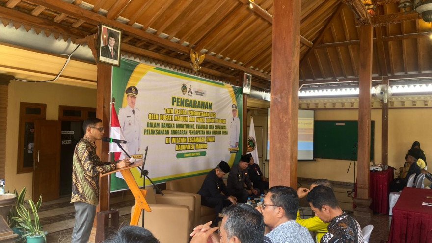 Pengarahan Tata Kelola Pemerintah Desa oleh Bupati Madiun dan Wakil Bupati Madiun dalam Rangka Monitoring, Evaluasi, dan Supervisi Pelaksanaan APBDes di Wilayah Kecamatan Jiwan