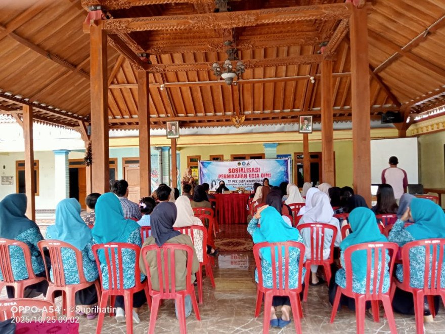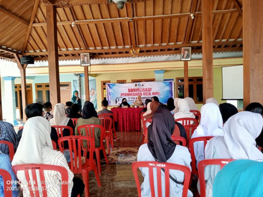 Kwangsen - PKK Desa Kwangsen menggelar kegiatan Sosialisasi Pernikahan Usia Dini dengan menghadirkan narasumber dari TP-PKK Kecamatan Jiwan. Kegiatan ini dilaksanakan di Balai Desa Kwangsen dan diikuti oleh anggota TP-PKK, kader posyandu, tokoh masyarakat, serta perwakilan remaja desa.
